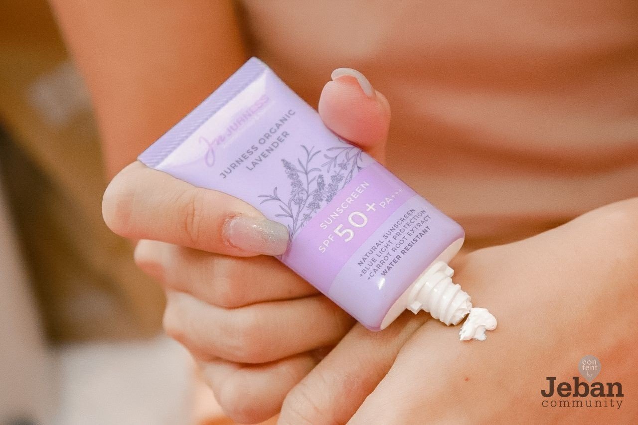 JURNESS Organic Lavender Sunscreen SPF 50+ PA+++ ตัวนี้มีส่วนผสมของสารป้องกันแดดจากธรรมชาติไม่เป็นอันตรายต่อผิว