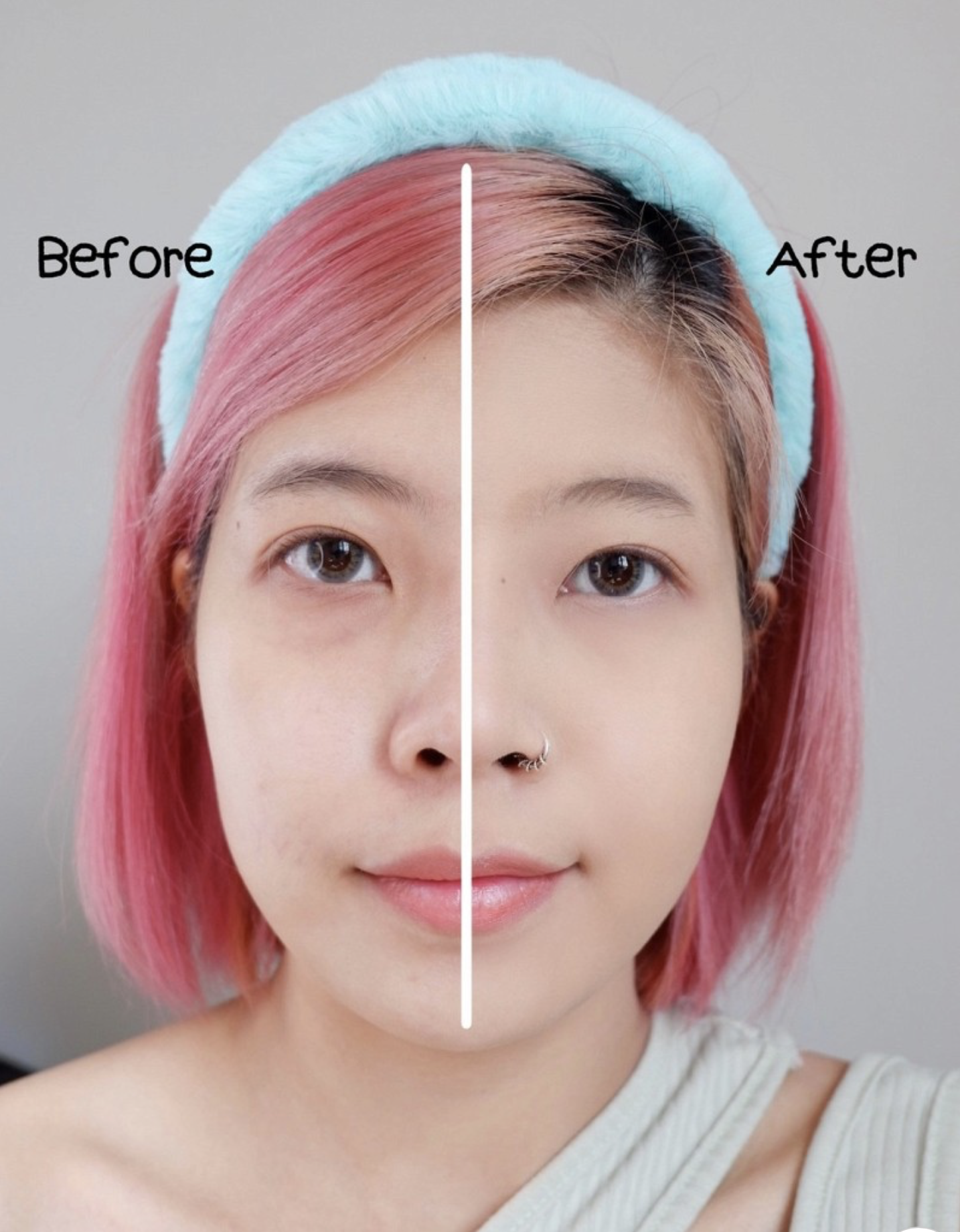 อันนี้มาเปรียบเทียบให้ดูกันเลยค่ะ ระหว่างหน้าสดกับลงแป้งพัฟ ปปมีปัญหาเรื่องผิวหน้าบางจนเห็นเส้นเลือด+ใต้ตาคล้ำ แล้วทุกคนดูเปรียบเทียบได้เลย คือแม่ไม่จกตาเด้อ ปกปิดดีมากกก