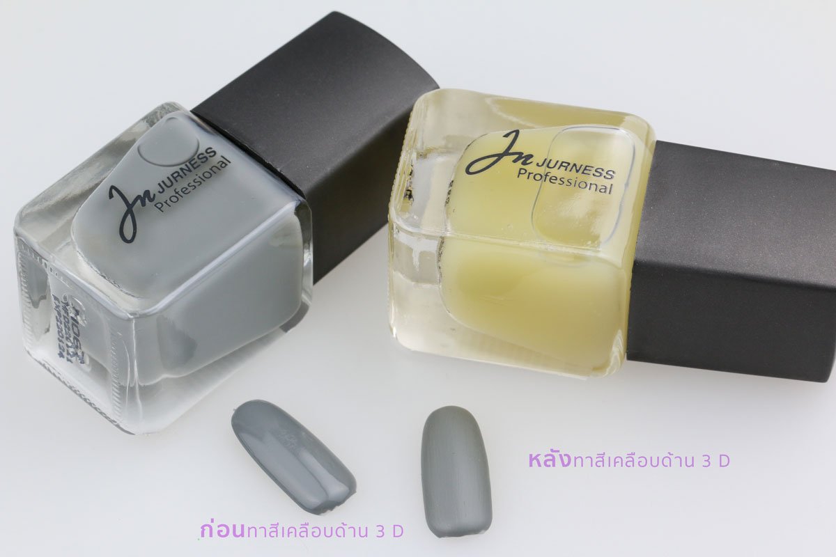 เทคนิคเปลี่ยนสีทาเล็บให้เป็นสีด้านง่ายๆ เพียงทาทับด้วยสีทาเล็บด้านเจอเนส 3 D รอสีพื้นให้แห้งก่อนแล้วทาทับด้วย JURNESS 3 D matte nail color นอกจากให้สีด้านแล้ว ยังให้เนื้อสัมผัสด้านอีกด้วย สวยเก๋อย่างมีสไตล์ด้วยสีทาเล็บเล็บเจอเนสด้าน 3 D